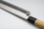 L’acier blanc 2, ou shirogami ni-go en japonais, utilisé pour la lame de ces couteaux, est un acier fabriqué par Hitachi métal et forgé traditionnellement par beaucoup d’artisans couteliers de Sakai. C’est un acier de carbone, qui contrairement aux aciers inoxydables, ne contient pas de chrome et donc s’oxyde plus facilement (retrouvez tous nos conseils pour entretenir vos couteaux en acier de carbone sur notre blog). Il est apprécié pour son équilibre : un tranchant vif, une dureté élevée, et pourtant un affûtage facile !